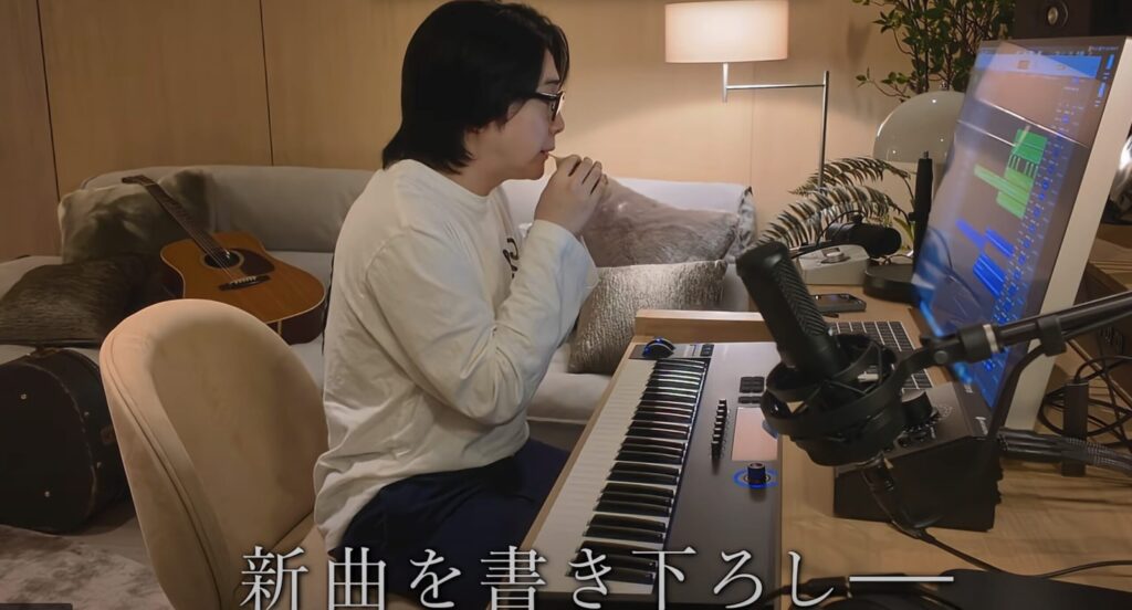 夜23時ごろから始まり、明け方まで、大森元貴さんが一人、部屋にこもって曲を作り上げていく姿が映されます。