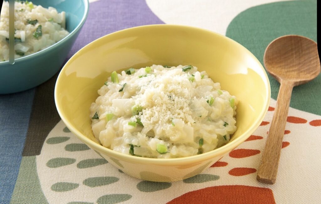 牛乳のコクとコンソメの旨みで、やさしく食べやすいクリーミー七草粥に。