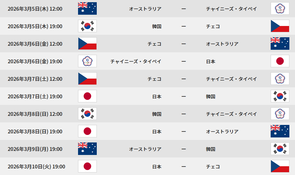 日本戦 公式日程(プールC / 東京ドーム)